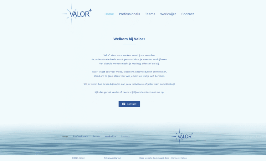 Valor+ staat voor werken vanuit jouw waarden. Je professionele basis wordt gevormd door je waarden en drijfveren. Van daaruit werken maakt je krachtig, effectief en blij. Valor+ staat ook voor moed. Moed om jezelf te durven ontwikkelen. Moed om te gaan staan voor wie je bent en wat je wilt bereiken. Bekijk de website